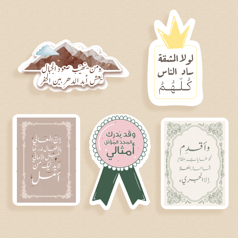 - أبعاد الملصقات: تتراوح بين 5-6 سم، مثالية للاستخدام على أسطح متنوعة.
