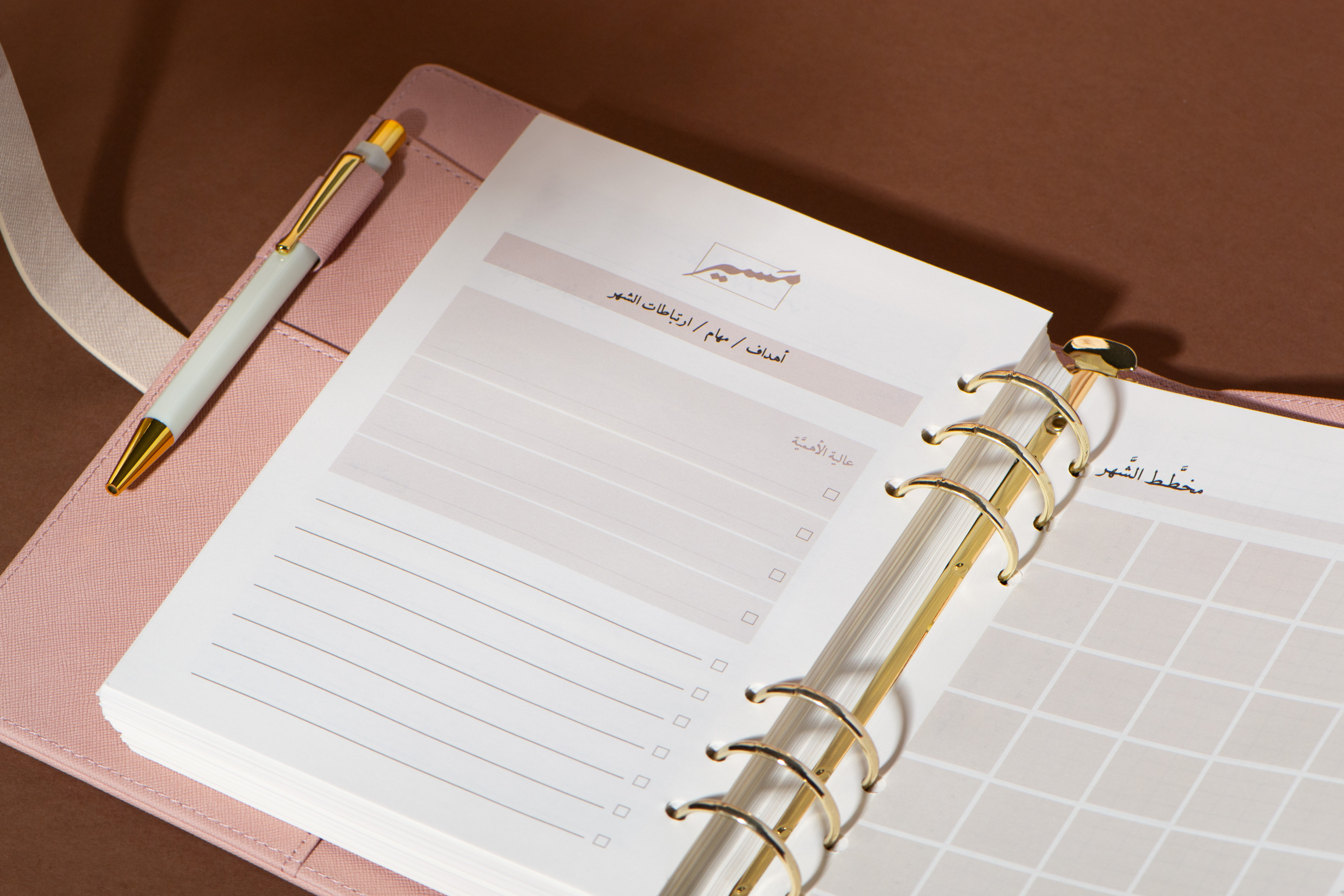 من الأشياء التي أوليناها أهميّة عالية في مفكرتنا "مسير"، التخطيط الأسبوعي/اليومي، لم تغب عنّا أهميته البالغة، فأفردنا كل أسبوع بصفحات لتدوين المهام، ورتّبناها حسب الأولوية، كما أفردنا كل يوم بمساحته الخاصة لتدوين أعمالك وتذكيراتك ومواعيدك..وأردفنا آخر الأسبوع مساحة حرة تكتبُ فيها ماتشاء وقت ماتشاء.